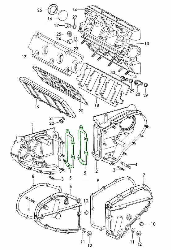 - 完整的保时捷发动机垫片套件和单个部件。