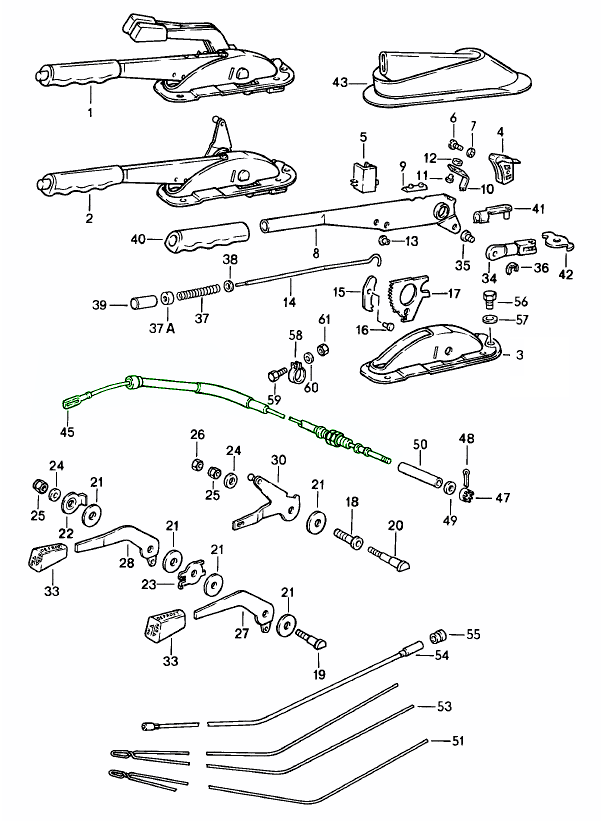 • 将机械张力从手刹杆传输到后刹车。