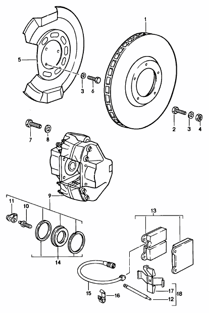 Front and rear calipers accept standard 930 brake pads and standard 911 brake hoses.