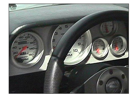 是时候更新您 914 中的那些过时的仪表了。使用 Rennline 的铝制仪表组,这项工作变得轻而易举。该装置由铝坯制成,并带有拉丝表面,如果需要,可以轻松上漆。它可以接受所有现代尺寸的仪表以及最初与您的工厂仪表集成在一起的 1/2 英寸宽的警告灯。该仪表组与 Autometer 的回放可编程转速表和电子速度表一起显示。也可以安装其他类型的现代仪表。VDO 和 Autometer 出售一种廉价的设备,可将机械速度表电缆旋转转换为电子脉冲信号,从而允许使用电子速度表。旧仪表组的切口尺寸过时,不适合现代尺寸的仪表。