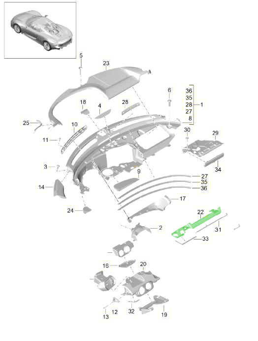 仪表板部件对您的保时捷内饰设计、功能和驾驶体验至关重要。从开关、通风口和饰板到仪表外壳和支架,这些部件确保您的仪表板保持坚固、时尚且功能齐全。随着时间的推移,仪表板部件可能会磨损、破裂或松动,从而影响美观度和可用性。