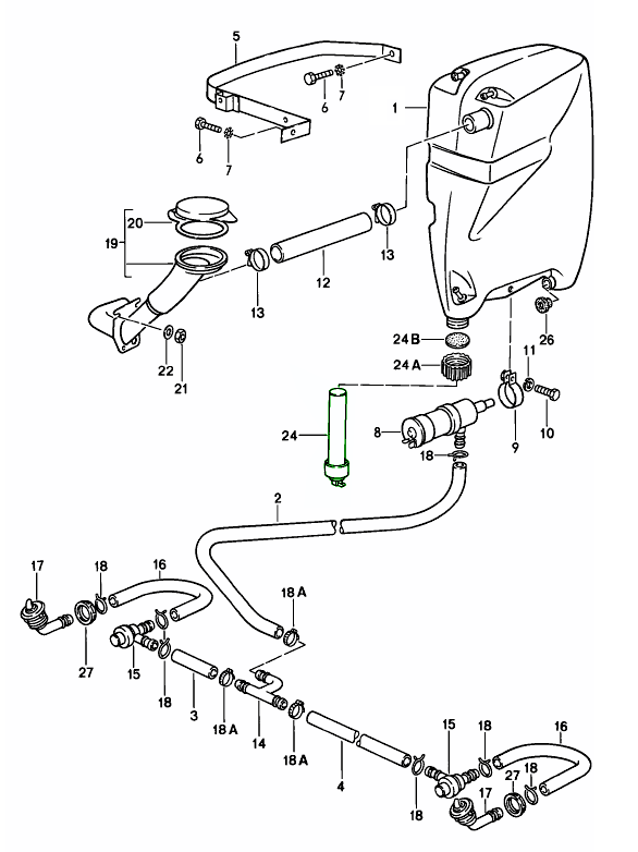 - 清洗瓶/储液器:储存清洗液,通常位于发动机舱或行李箱区域。