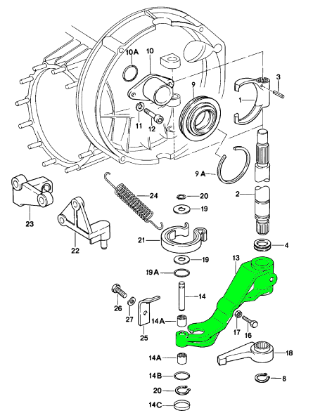 离合器拨叉(或分离杆)充当保时捷离合器踏板运动和分离轴承之间的连接,允许控制离合器组件的接合和分离。