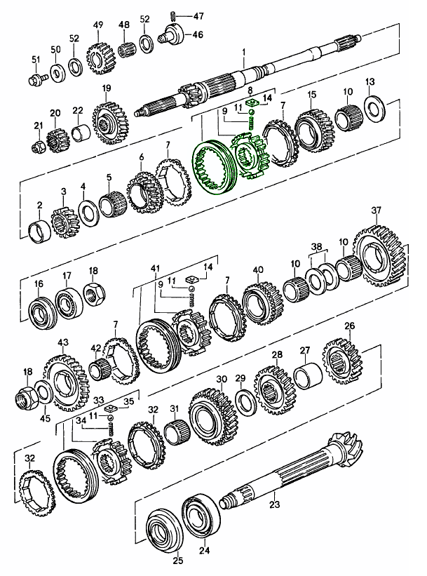 - 保持齿轮毂、同步环和齿之间的正确对齐。