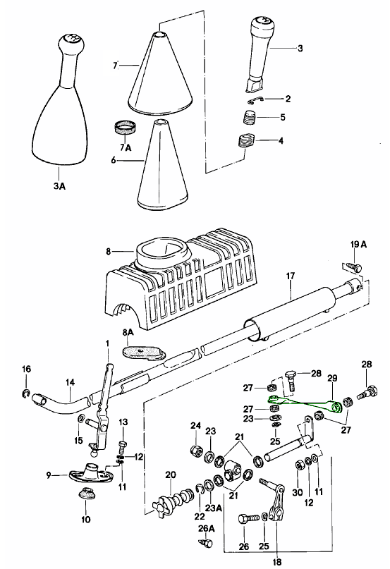 中间换挡杆将变速器输入轴与换挡连杆连接起来。换挡杆会因为这个塑料轴承而偏转,几乎所有车辆都会偏转。这会导致保时捷 924、944 和 968 的换挡连杆间隙过大。您可以利用这个来消除磨损的换挡杆带来的松动感。