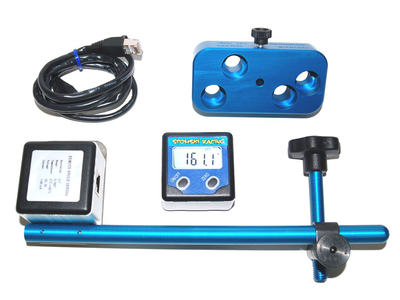 A revolution in cam timing, STOMSKI RACING's DigiDix™ - Digital Degree Wheel - provides the most accurate, easy to use degree wheel ever. No more awkward setups, questionable readings, convoluted pointers, or imprecise measurements. With DigiDix™, simply bolt the sensor/adapter to the flywheel-end of the crankshaft and secure the torsion arm. Setup time is less than one minute. You are now ready to measure crank rotation to one tenth (.1) of one degree accuracy and repeatability.