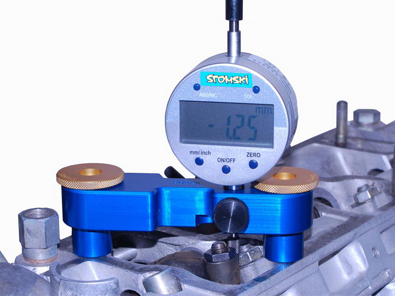 STOMSKI RACING finally takes the guess work out of timing the 911 engines. No longer do you need to hassle with convoluted setups, indicator contacts slipping off of the valve retainer, or measurements that will not repeat. This fixture indexes off of two cam carrier studs and literally takes only 10 seconds to setup. Once in place, the SR098 consistently and repeatedly holds the dial indicator contact in the same place on the valve retainer- EVERY time.