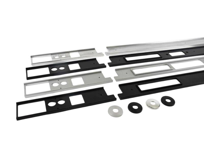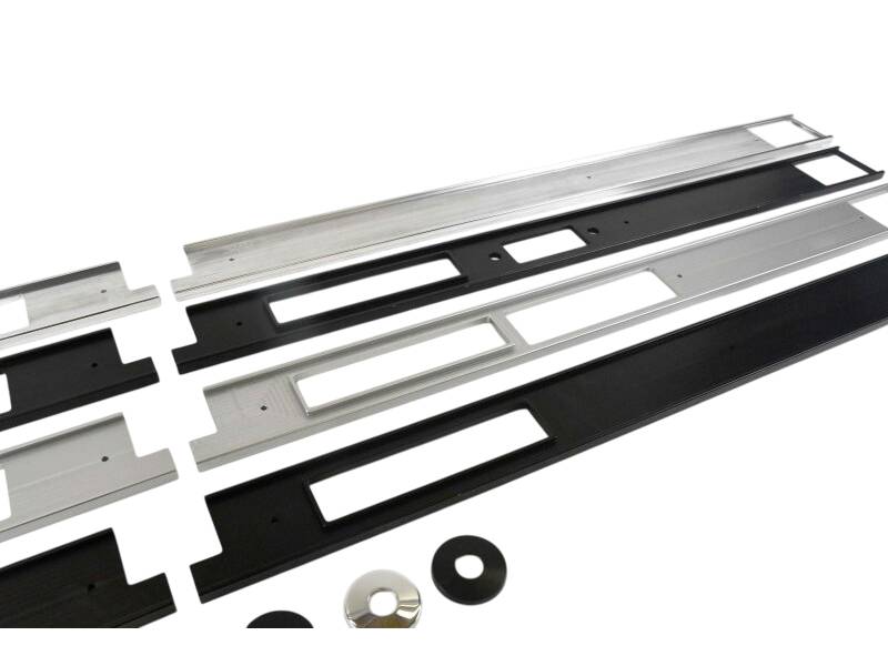 该套件包括两件式“歌手外观”仪表板装饰条,可替换仪表板前部的原装泡沫装饰条。仪表板装饰条采用实心铝材 CNC 加工而成,并经过成型,这意味着可以插入/缩回任何覆盖材料(例如皮革、内饰等)。
