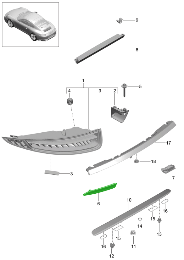 中央大灯和后反射镜是保时捷后照明系统的关键部件,旨在提升可视性、安全性和对称性。中央大灯提供均衡的照明,而后反射镜则确保即使在车灯关闭的情况下,您的车辆也能被他人看到——这对于夜间和能见度低的驾驶条件至关重要。