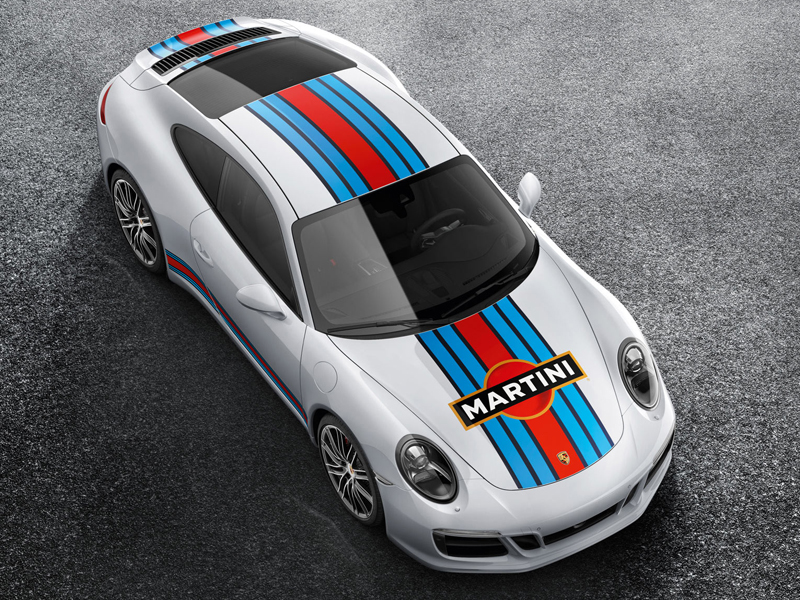 Includes "MARTINI" logo and decorative strips on the luggage compartment lid as well as decorative strips on the roof, rear lid, rear spoiler and side skirts in Martini Racing Design.