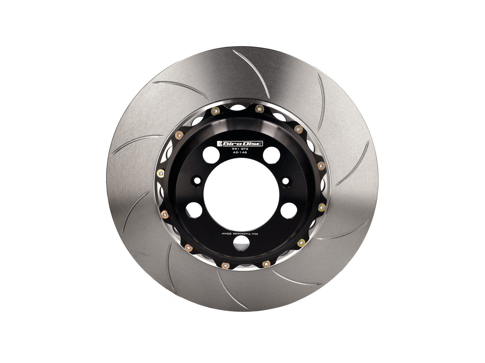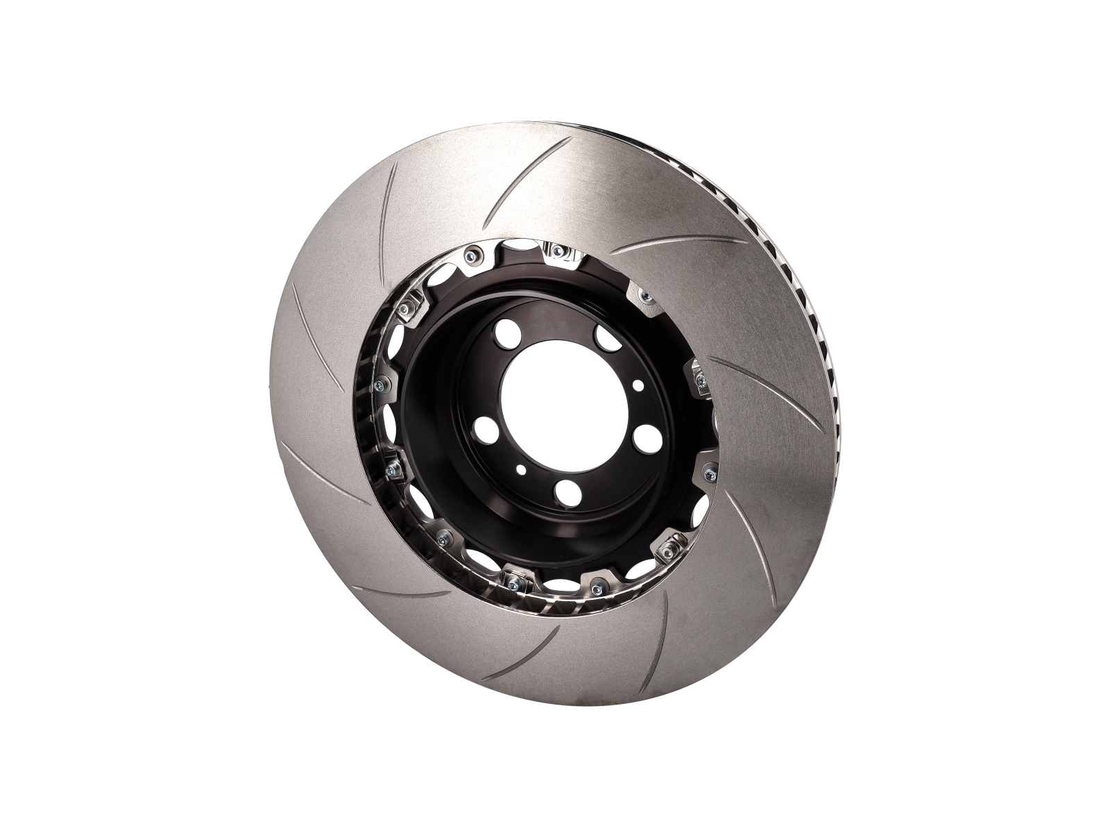 我们转子的中央帽部分由严格采购自美国的 6061-T6 航空规格铝制成。盘片由我们自己的专有铸铁制成,在美国浇铸,并从头到尾在 Girodisc 内部加工。转子采用弯曲叶片设计,在赛车中开发,用作离心泵,迫使冷却空气通过盘片。