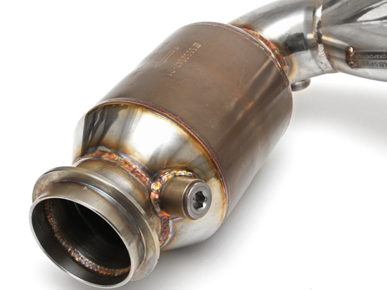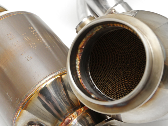 赛车催化转化器的单元数量比标准原厂系统更少。这降低了排气背压,同时仍能减少污染物排放,并提升动力和噪音。