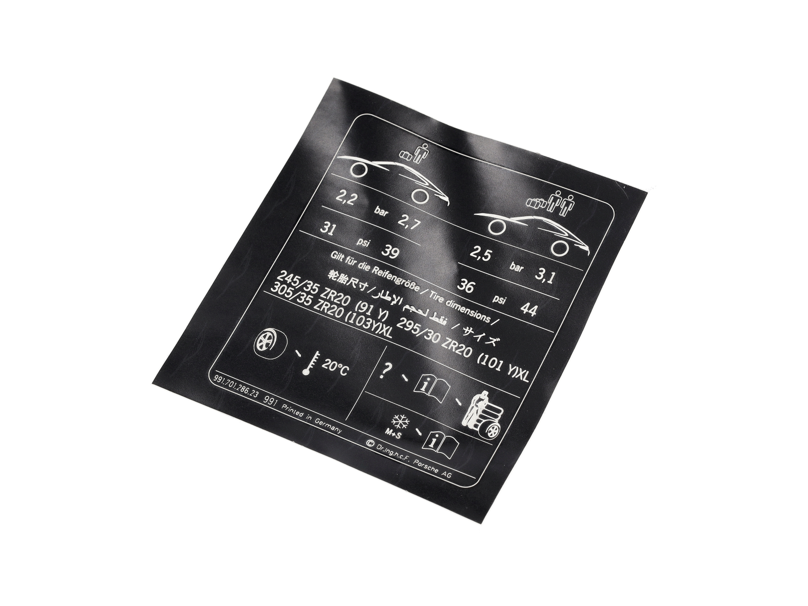 正确放置且清晰易读的轮胎贴花既能确保驾驶安全,又能确保保时捷的真实、专业外观。
