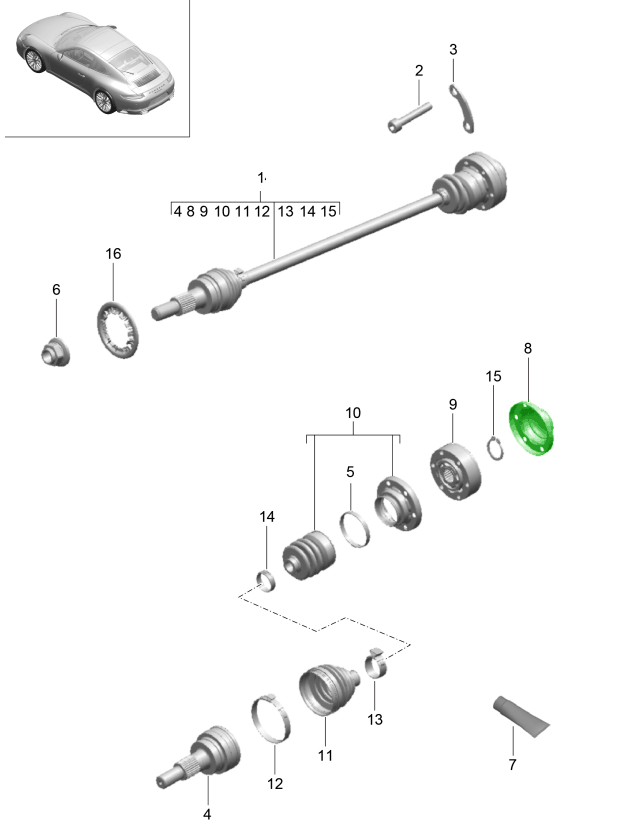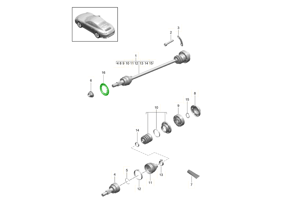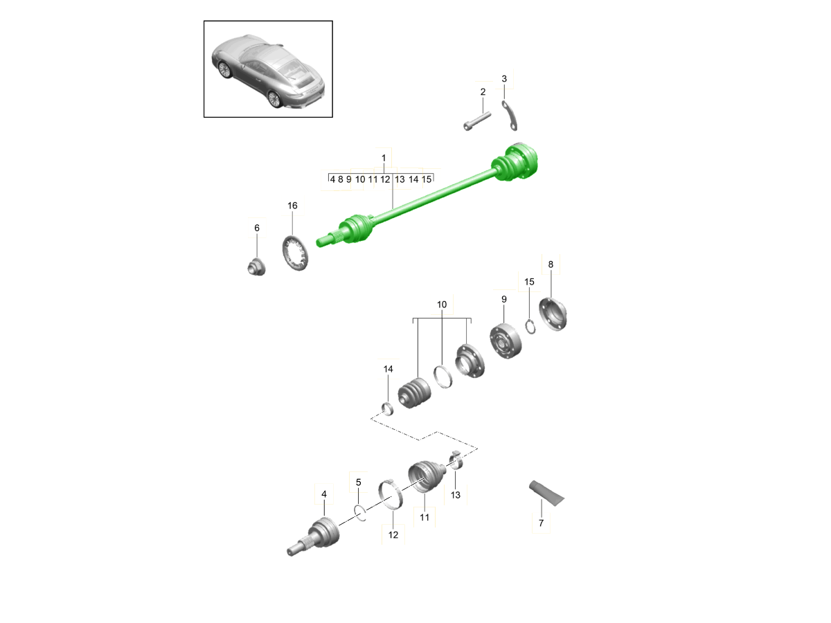 Driveshaft, Rear. Porsche 991 GT3 RS / 991 R