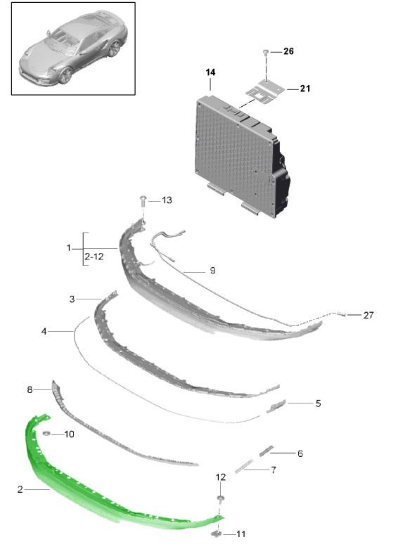 更换或升级保时捷的前扰流板可确保最佳的空气动力学性能、冷却效率和设计完整性,同时恢复或改善汽车独特的道路存在感。