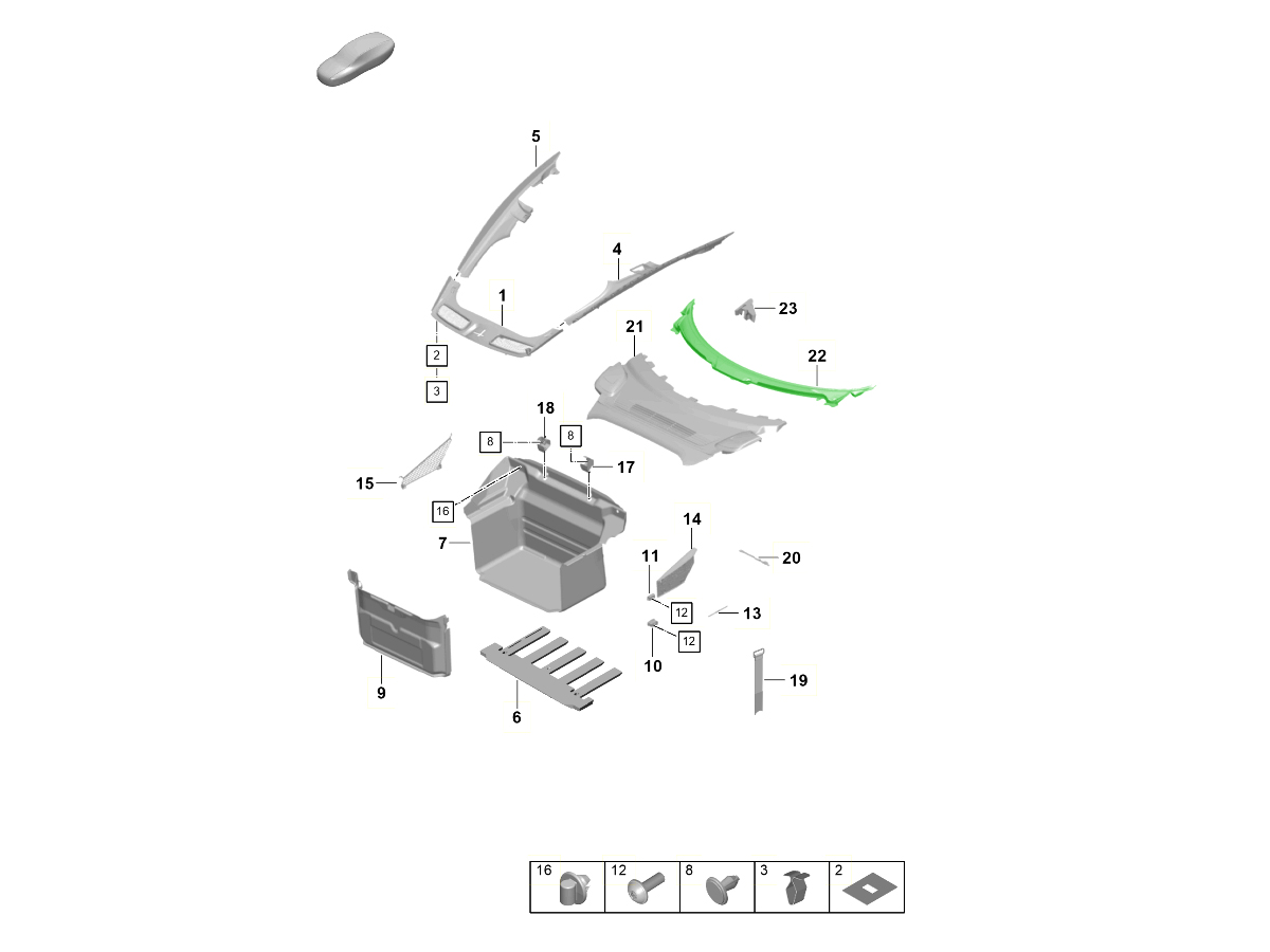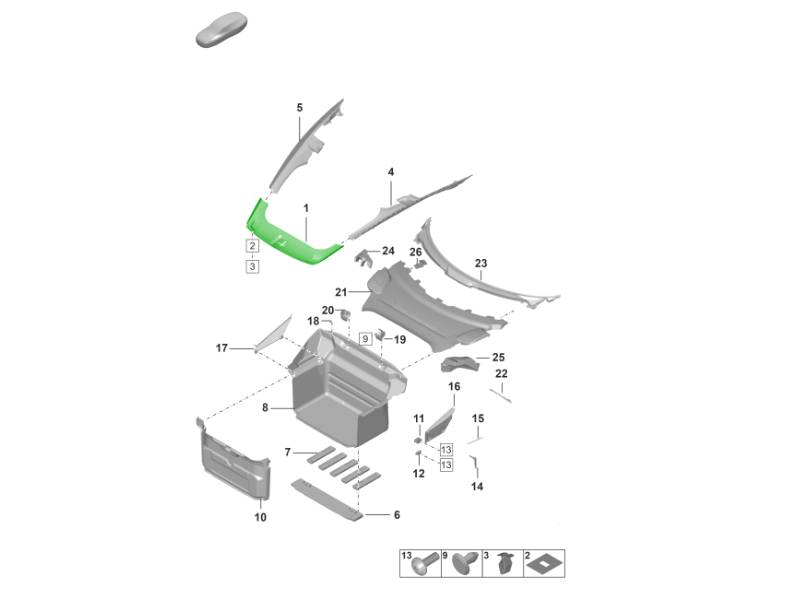 行李箱内衬塑料盖是位于保时捷行李箱(后备箱/行李箱)内的保护性和装饰性面板。它们兼具美观和实用功能,有助于保护内部金属表面、线路和部件免受磨损、潮湿和货物相关的损坏。