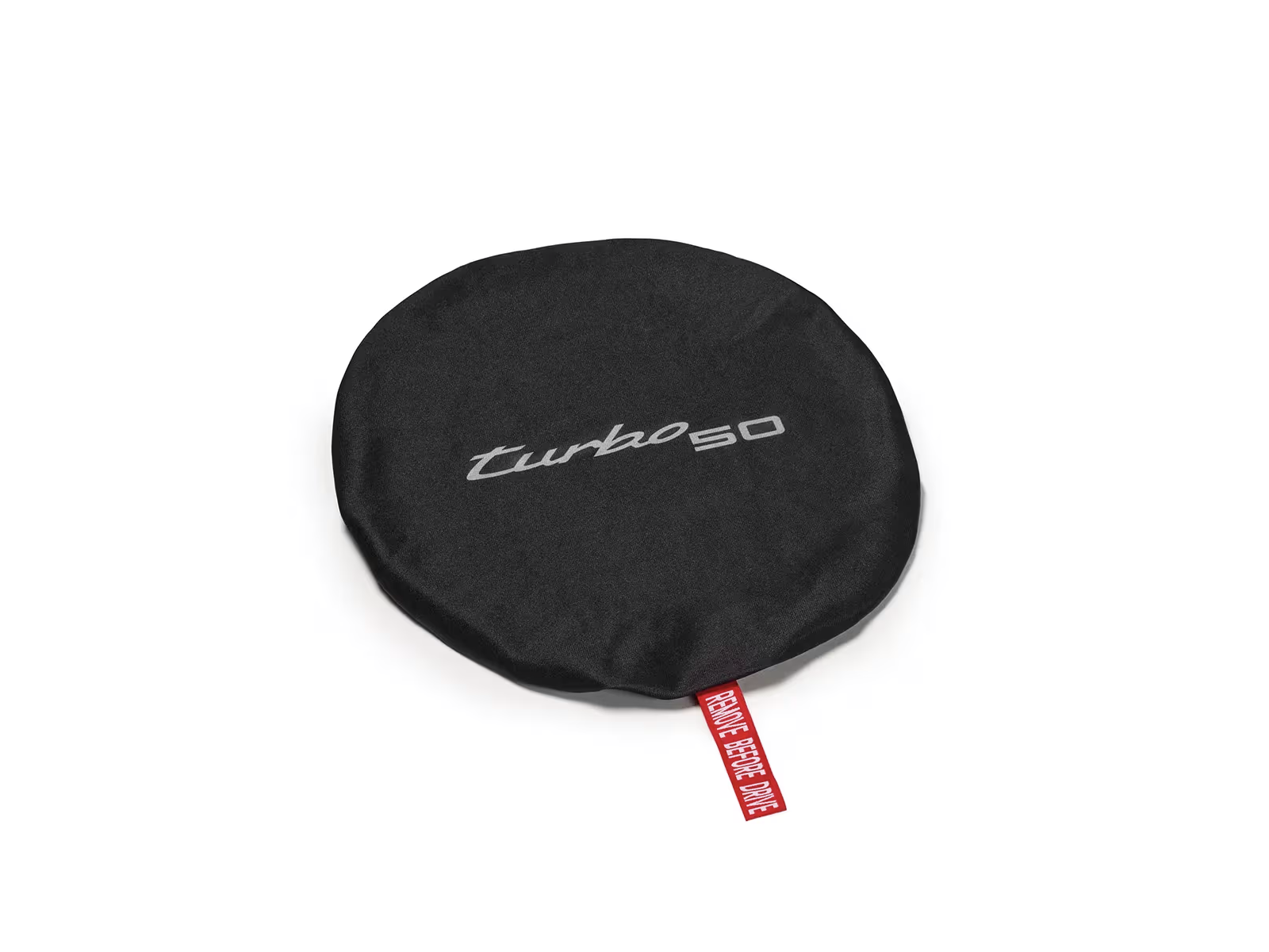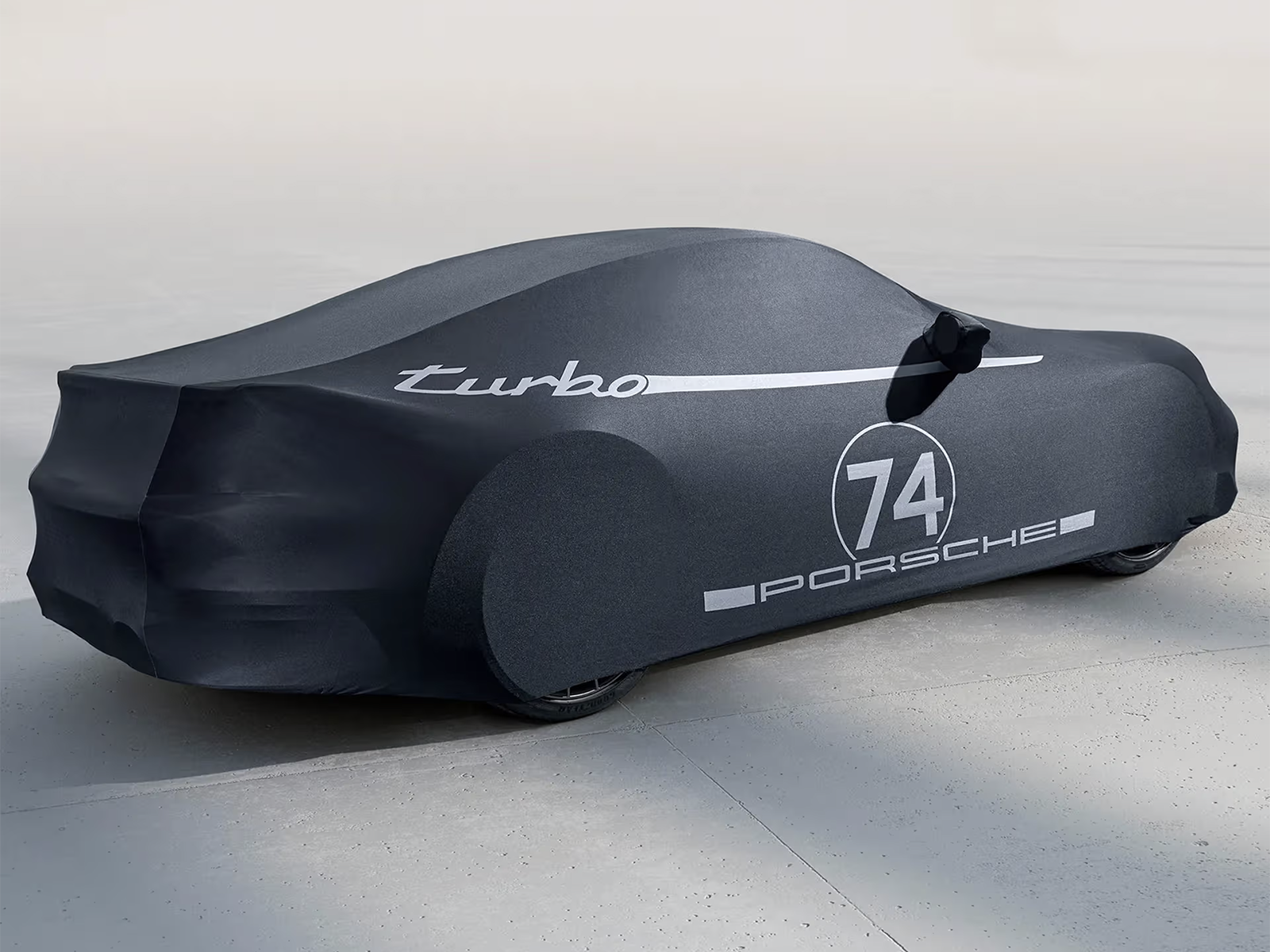 这款特殊的室内车罩包括方向盘套,是作为“Turbo 50 周年”和保时捷 911 Turbo 50 周年限量版(1974 台)的一部分而开发的。带有滚边、侧面印有“turbo”字样,后备箱盖上印有彩色保时捷徽章。当然,黑色的室内车罩和方向盘套经过精心剪裁,完美贴合,采用透气、防静电和防尘材料制成。