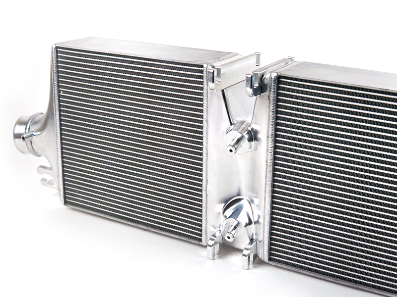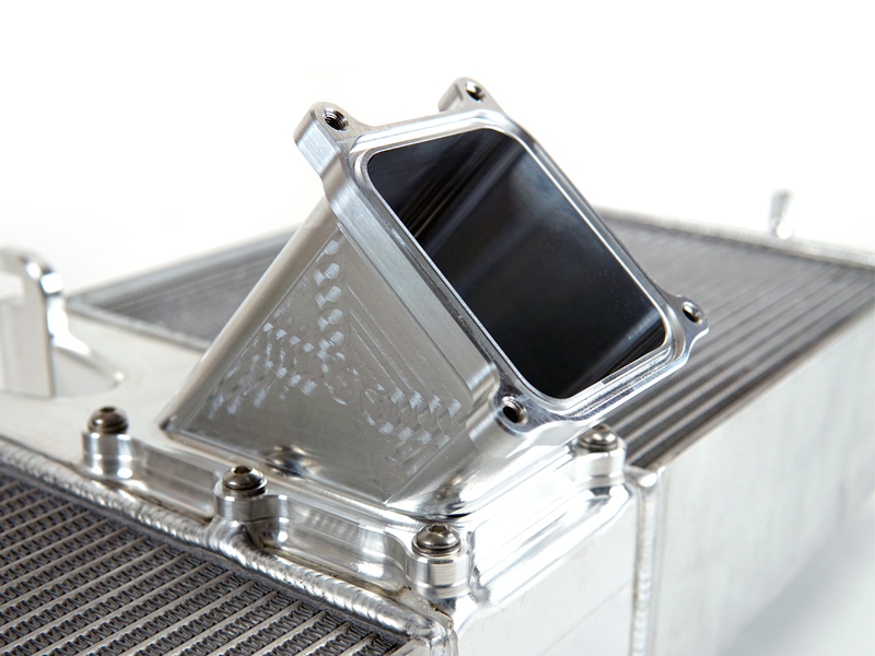 如果您问我们,这是您为该平台制作的最好的中冷器套件。为了在系统的任何部分实现最大性能,我们竭尽全力。起点是来自著名的 Garrett Motorsport 的核心,这些核心制作精良,具有薄而堆叠的翅片,完全符合我们在冷却和气流称重方面的规格。末端水箱由薄铸铝制成,以减轻重量并仍利用气流。为了适应更厚的核心,我们用质量最好的碳纤维管道代替了空气导管。