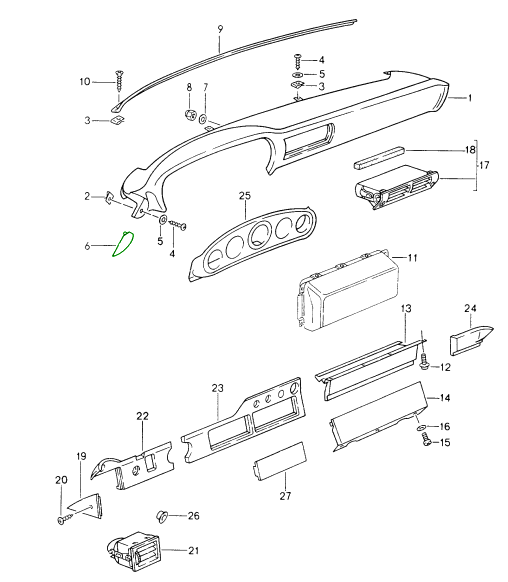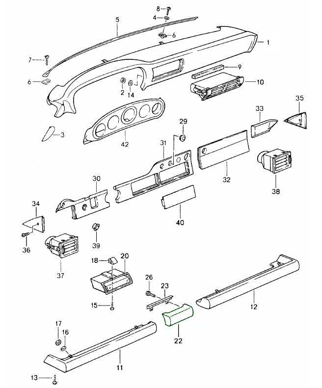 仪表板部件对您的保时捷内饰设计、功能和驾驶体验至关重要。从开关、通风口和饰板到仪表外壳和支架,这些部件确保您的仪表板保持坚固、时尚且功能齐全。随着时间的推移,仪表板部件可能会磨损、破裂或松动,从而影响美观度和可用性。