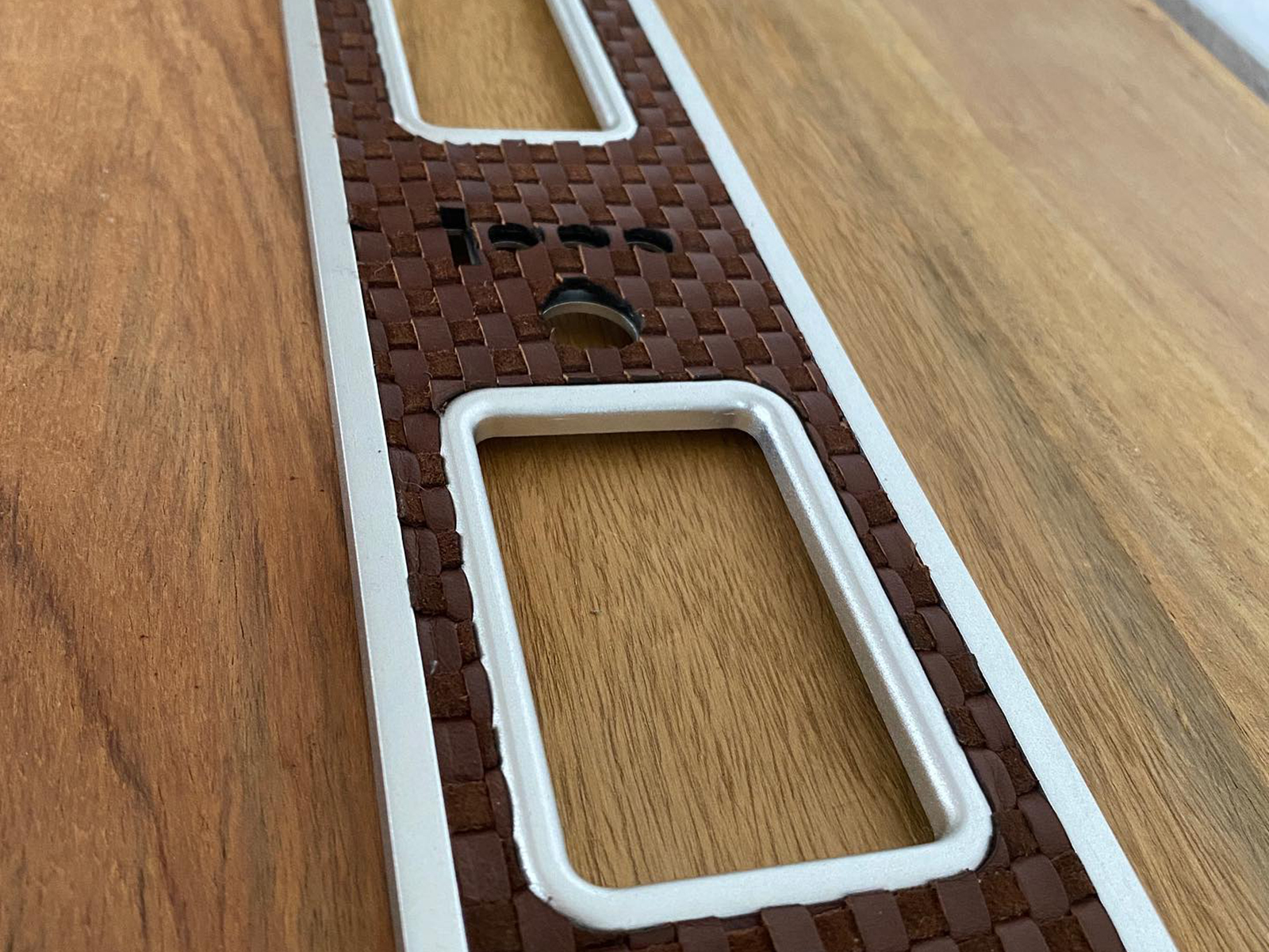 仪表板由一整块优质铝材铣削而成,安装在通风口的角落处。