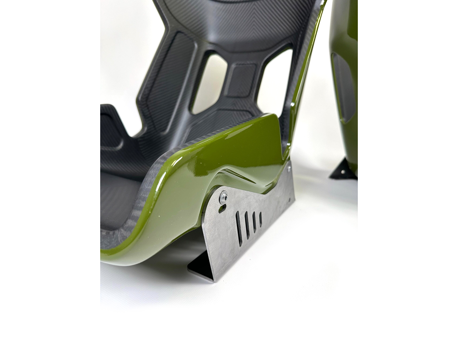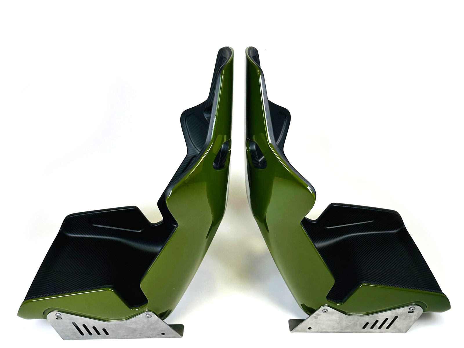 Light weight carbon fibre bucket seats with reclining back rest and removable back and bottom pads.
