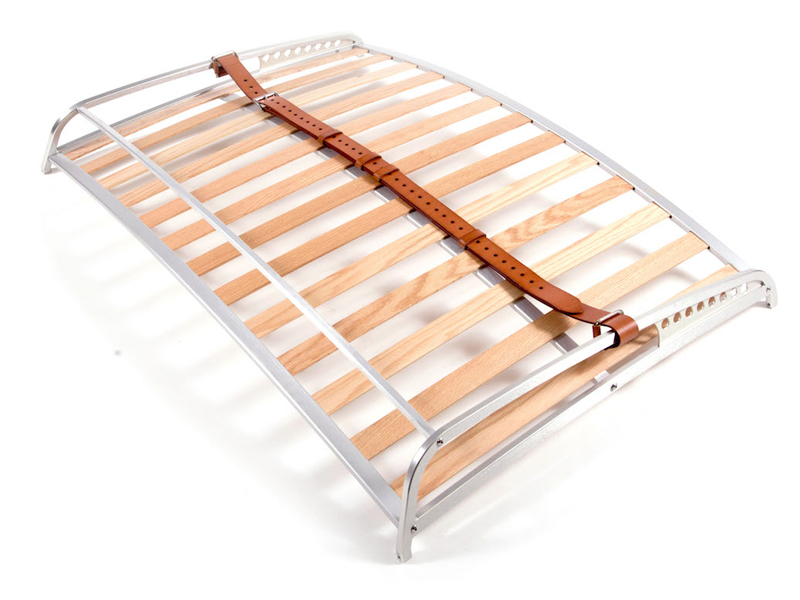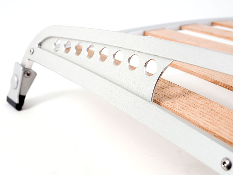 垂直板条由切割的橡木条制成,弯曲以适应车顶的形状,为固定货物提供了坚固的底座。 Rennline Vintage 车顶架采用透明漆面处理,可抵御风雨,符合线条、轮廓和经典造型,非常适合放在您的保时捷车顶上。