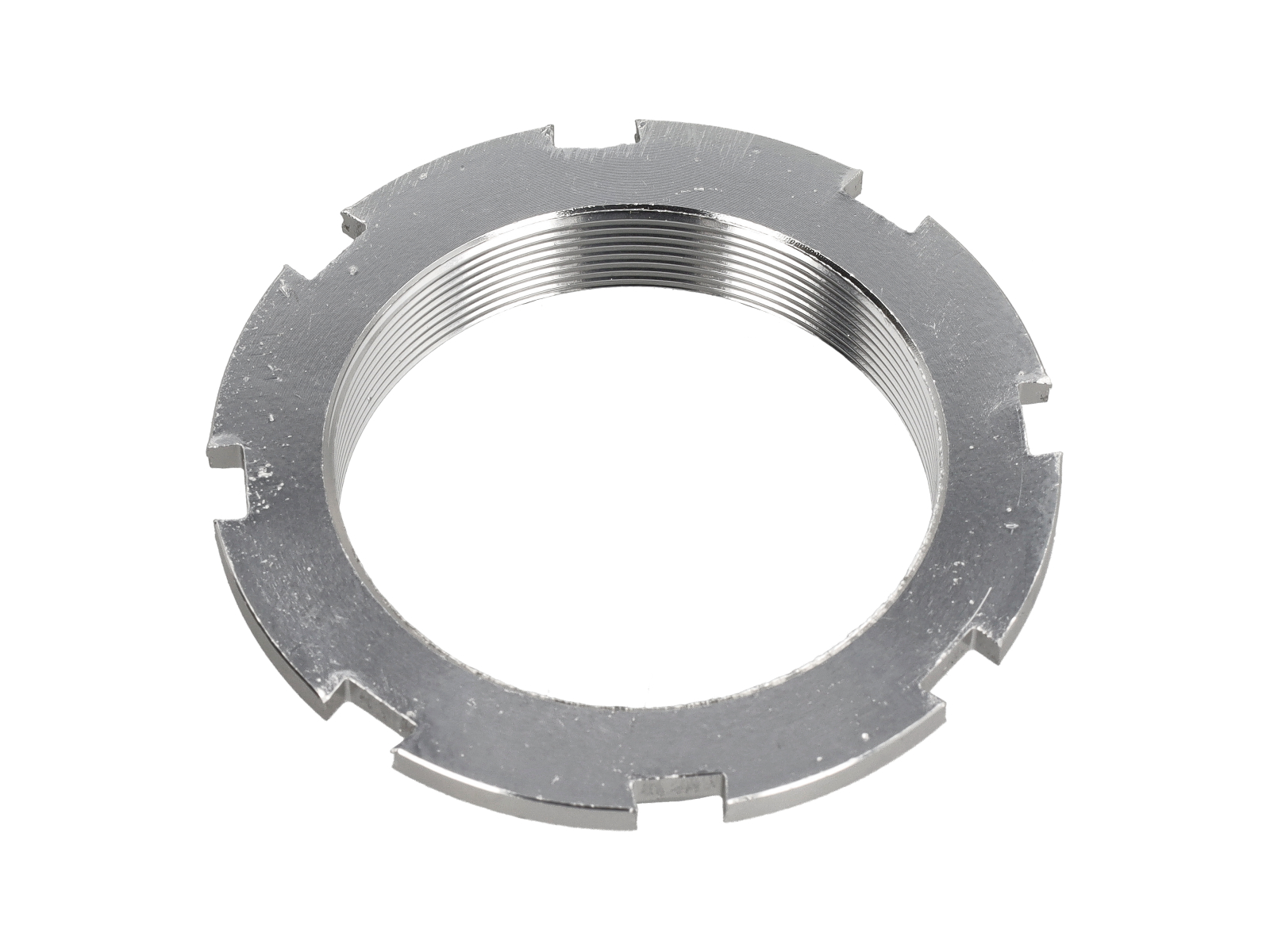 安装在前减震器总成上的调节螺母,可确保减震器芯或相关支柱部件的牢固机械固定和精确定位。其正确的配合和螺纹啮合对于在反复的载荷循环、颠簸和制动力作用下保持悬架系统的完整性至关重要。