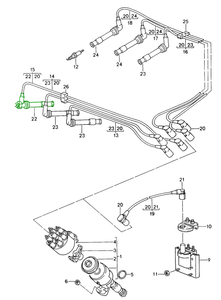 - 1 x 点火高压线组。保时捷 993 3.6L Carrera (99360206099)