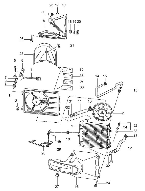 该套件配有水散热器、供水和回水软管、通气管以及所需的所有夹子和夹具。