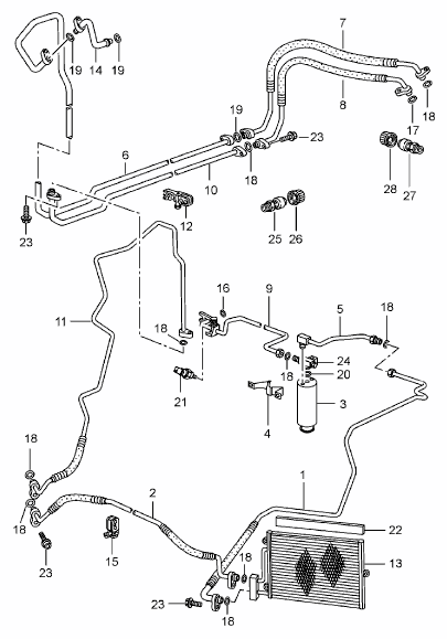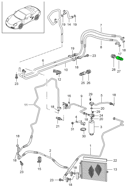 空调冷凝器和干燥器是保时捷空调控制系统的重要组成部分。冷凝器负责将制冷剂气体冷却并冷凝成液态,而干燥器(或称储液干燥器)则负责去除水分和污染物,确保高效制冷和长期的空调性能。