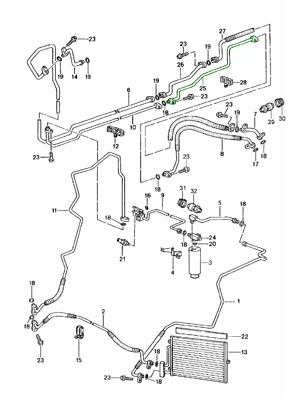 空调管道构成了保时捷空调系统关键部件之间的连接网络。它们确保整个系统实现高效的制冷剂循环、压力调节和热交换。