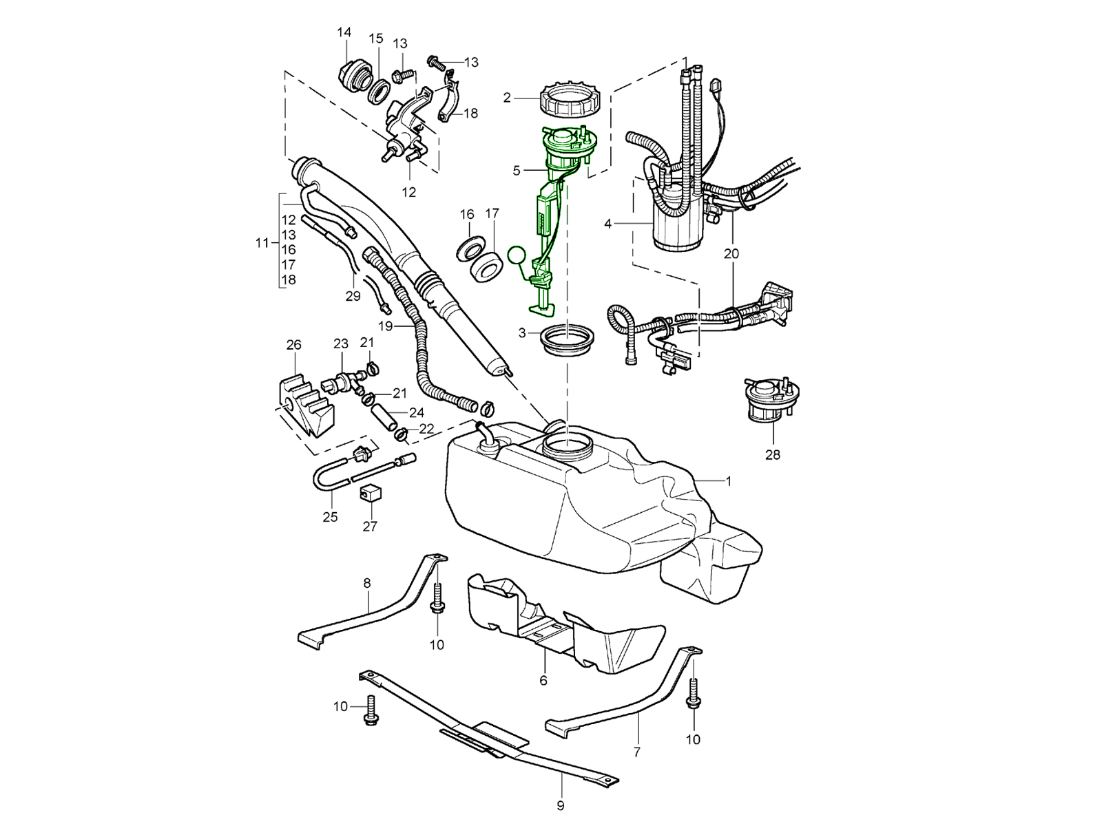 fuel tank 996 CARRERA 2 M338 (Rear-wheel drive) 1998-05 201-00
