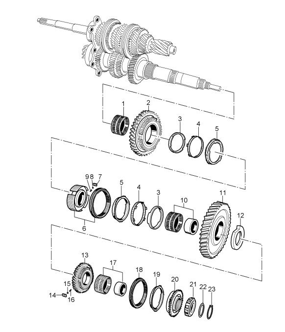 在变速箱维修期间,强烈建议将同步环、制动带和狗齿作为整套进行更换,以确保磨损均衡和运行稳定。