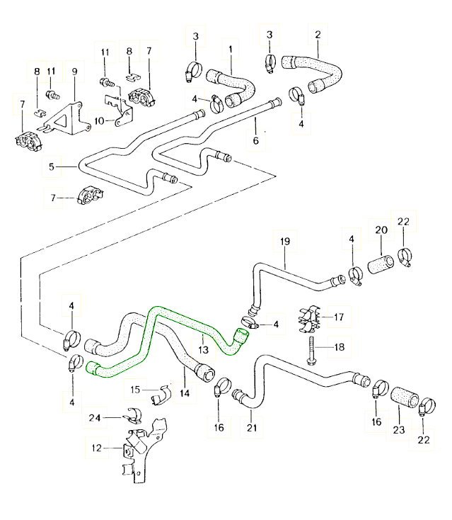 冷却液软管 - 发动机舱