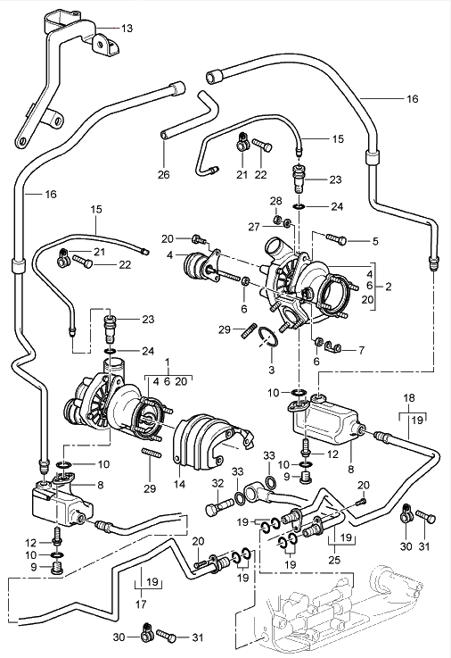 - 适用于保时捷车型的涡轮增压器、中冷器及相关零件。