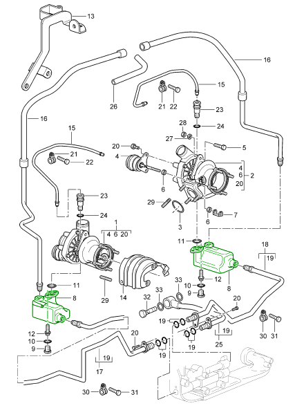 - 适用于保时捷车型的涡轮增压器、中冷器及相关零件。