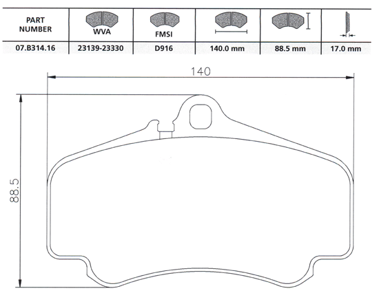 刹车片尺寸:宽:140mm / 厚:17mm / 高:76mm