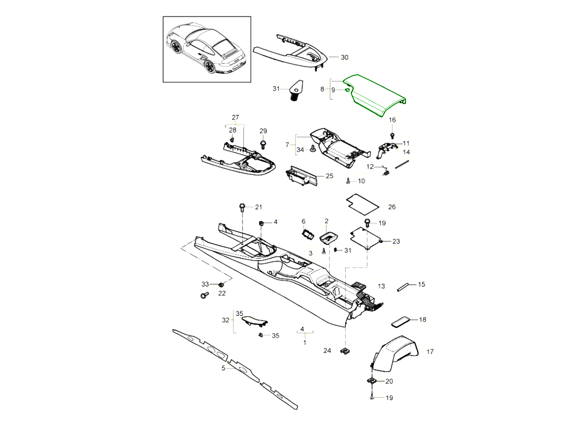 中央和中控台组件结合了设计和功能,为您的保时捷提供存储、控制访问和驾驶室结构。