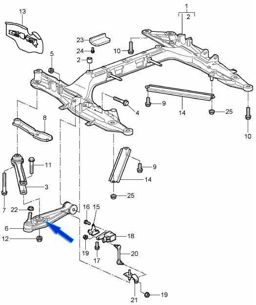保时捷 997.1 C2 CABRIO / COUPE 2005-08 配备标准底盘 (I029) 和 6 速手动变速箱 (I480) 的汽车