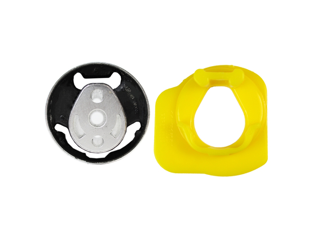 HD 变速箱支架使用我们 25% 刚度更高的衬套** 来替换您的 OEM 变速箱托架衬套。这些装置的安装方式与工厂衬套相同,可消除原装橡胶装置经常出现的碰撞声和传动系统松动。这些高品质装置采用铝制中心衬套和花键外圈,内填充了硬度更高的橡胶,可实现完美贴合和延长使用寿命。对于那些希望减少传动系统间隙但又不希望半固体和固体支架产生粗糙感的人来说,这是一个完美的解决方案。