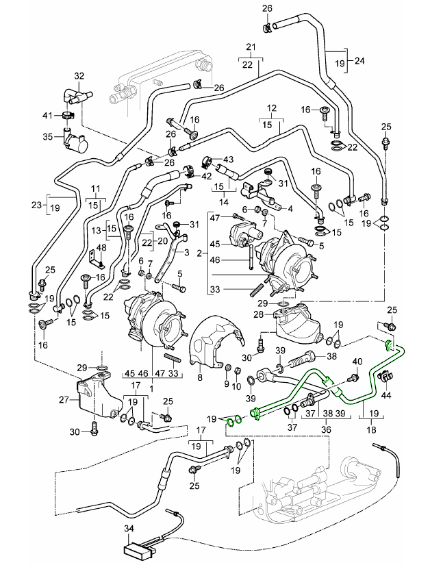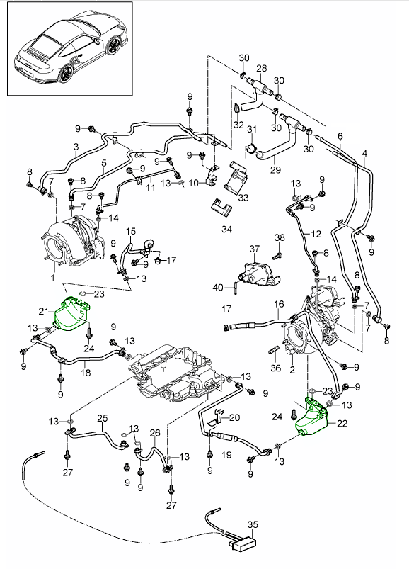 - 适用于保时捷车型的涡轮增压器、中冷器及相关零件。