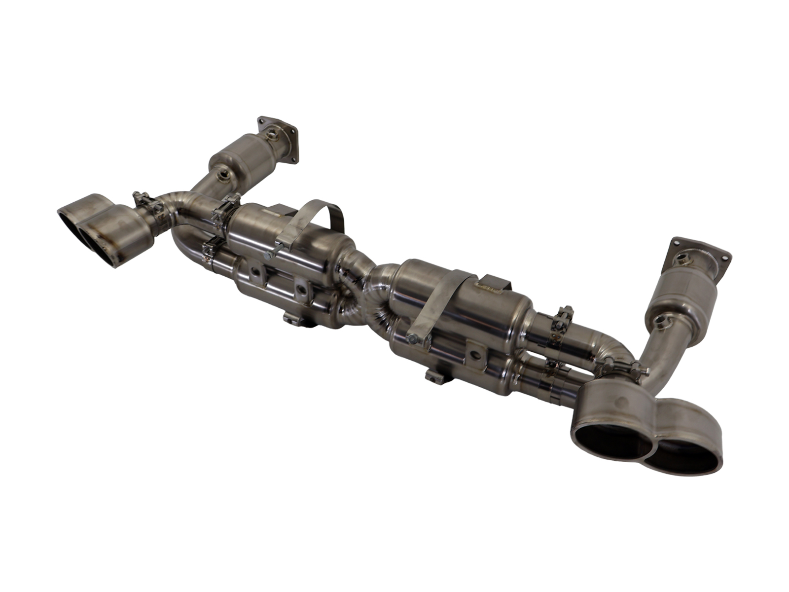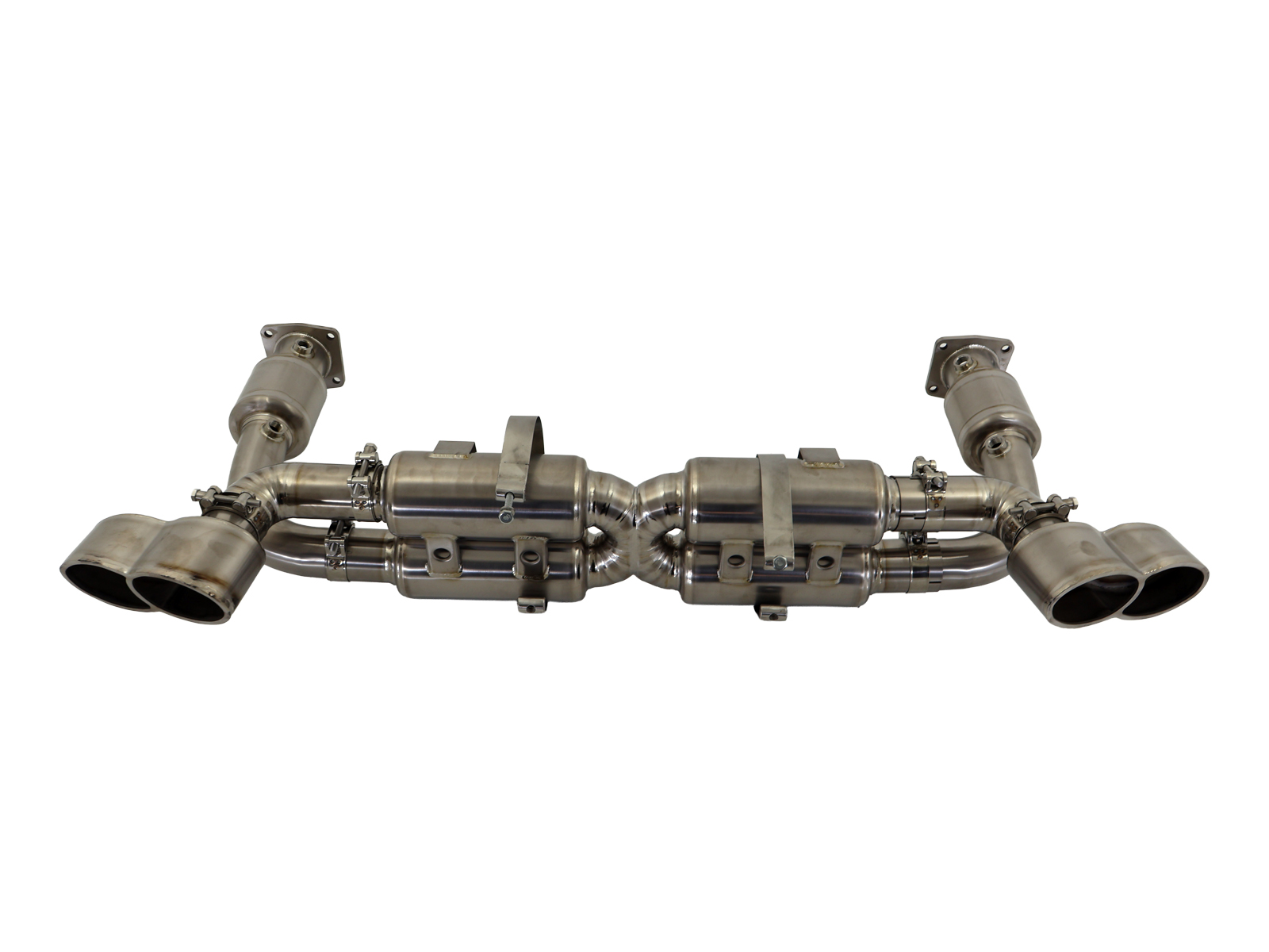 DesignTek 997 Turbo Sport exhaust with 200 cell Imported HIGH FLOW catalytic converters. Complete bolt-on system.