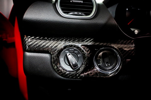 碳纤维内饰套件:变速杆和仪表板装饰条。变速杆采用黑色真皮包覆。