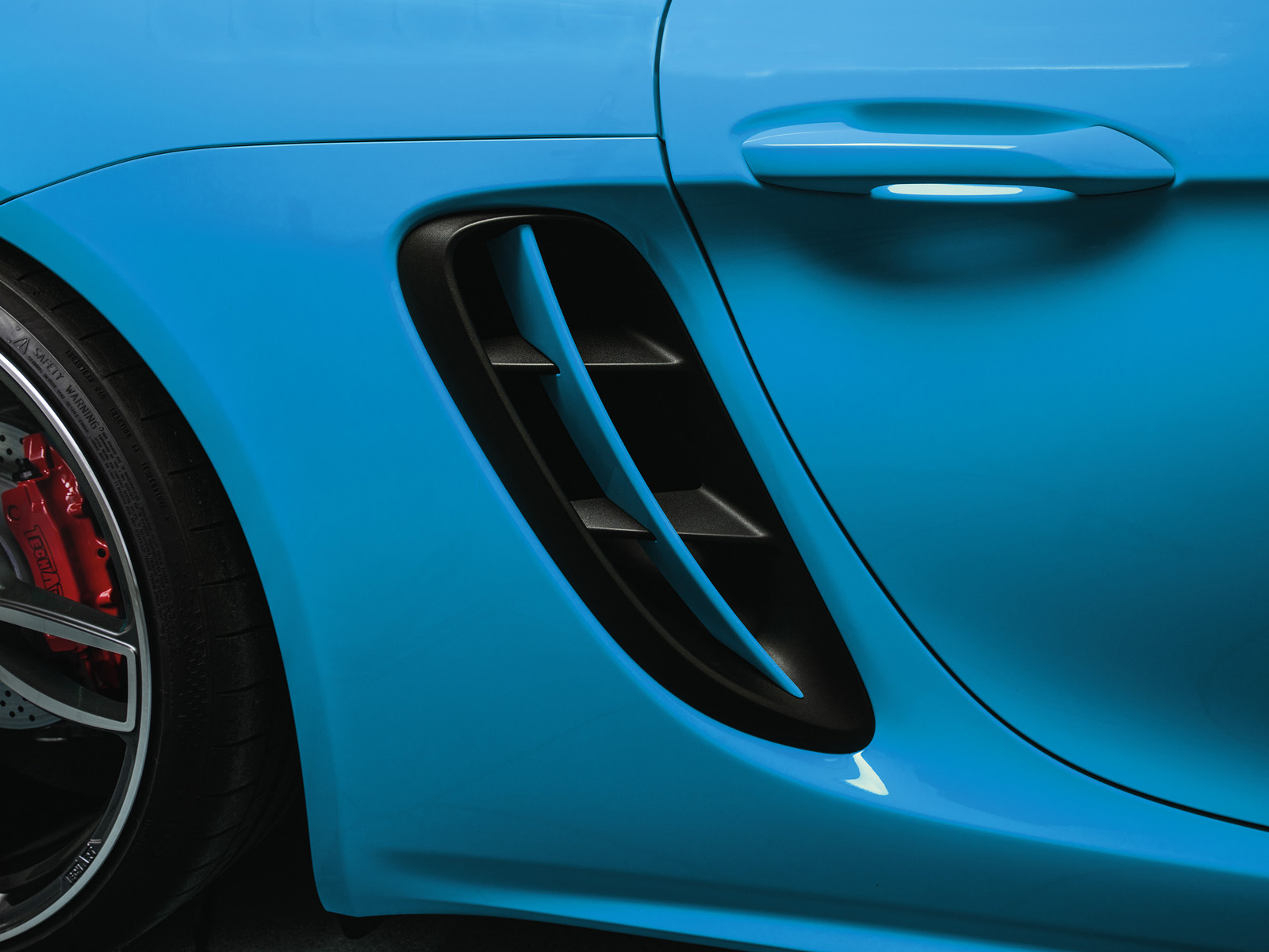 TECHART 侧通风口饰板采用黑色 PU-RIM 材料制成,可涂成车身颜色