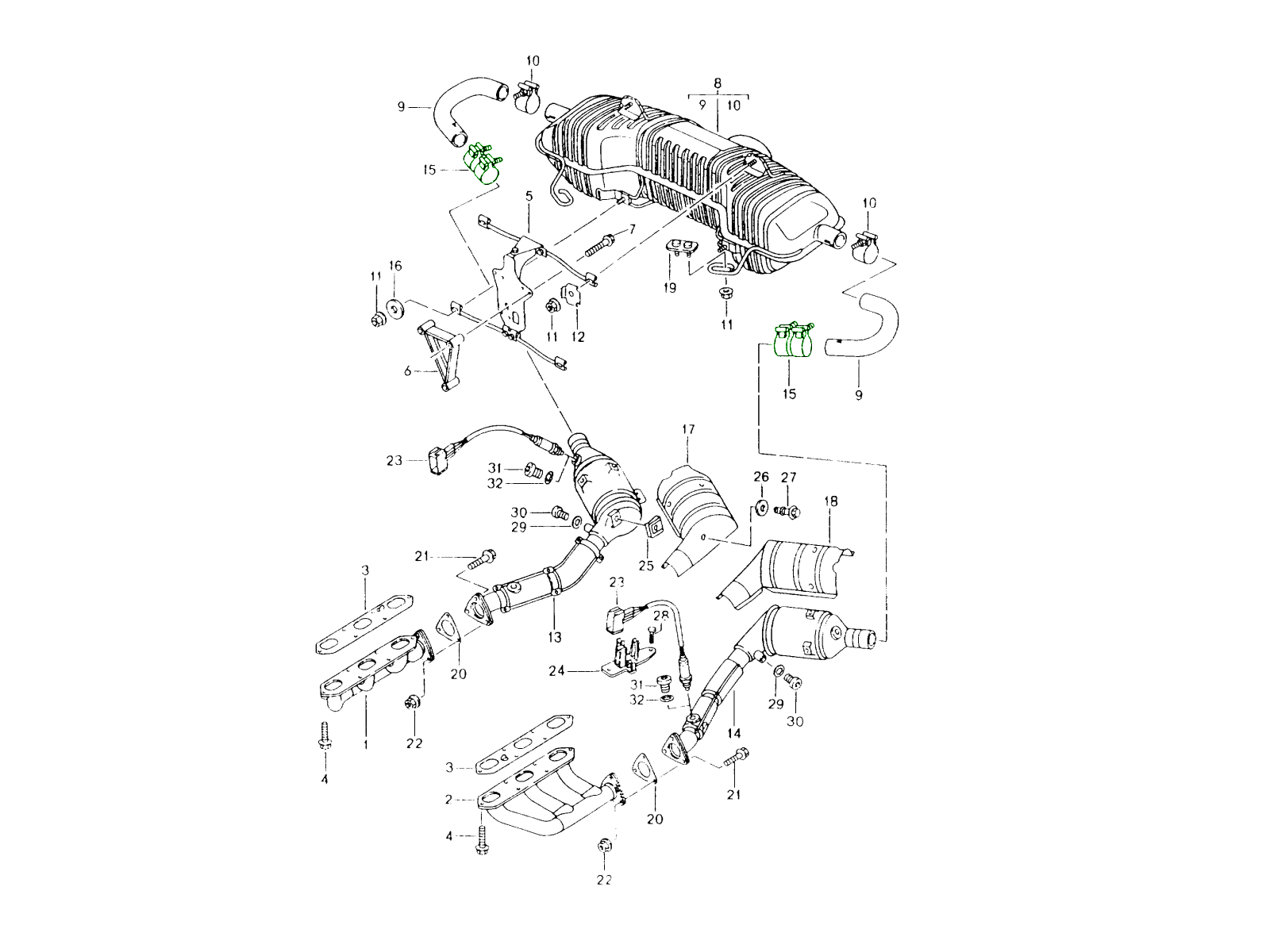 安装运动型排气管时应使用此安装套件,该排气管通常仅适用于 Boxster 986 2.7L 或 3.2L。
