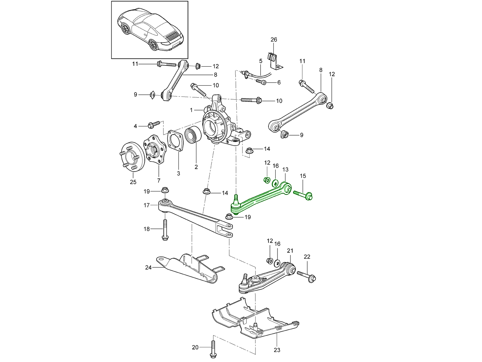 rear axle, wheel carrier, control arm and wheel hub for 986 Boxster 1997-04 501-00