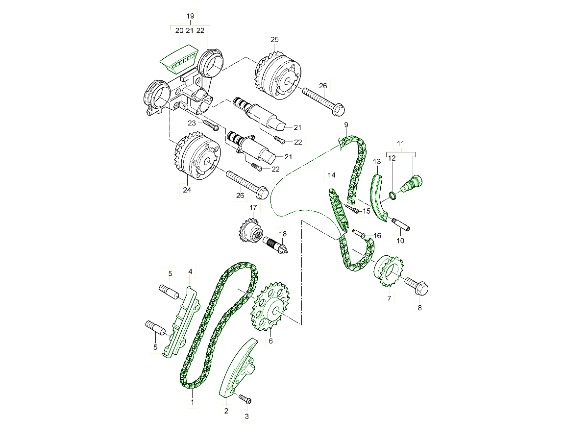 - 专为保时捷发动机设计的精密正时链、导轨和张紧器。