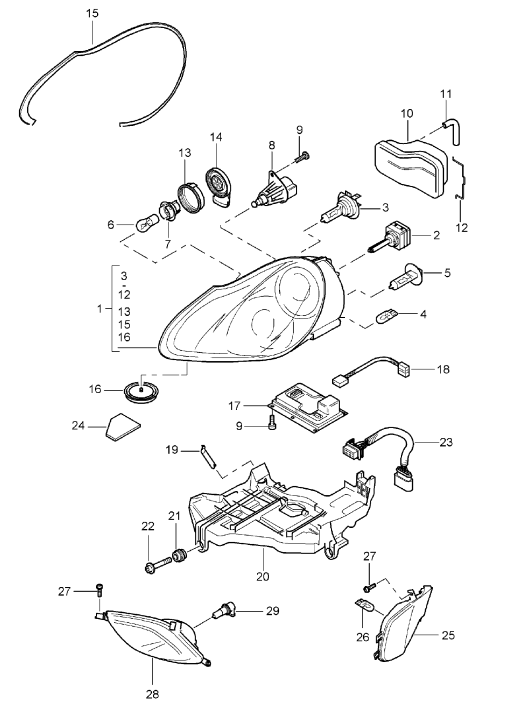 2 个氙气灯泡 2 个电子镇流器 2 个内置点火器(位于镇流器内部)。