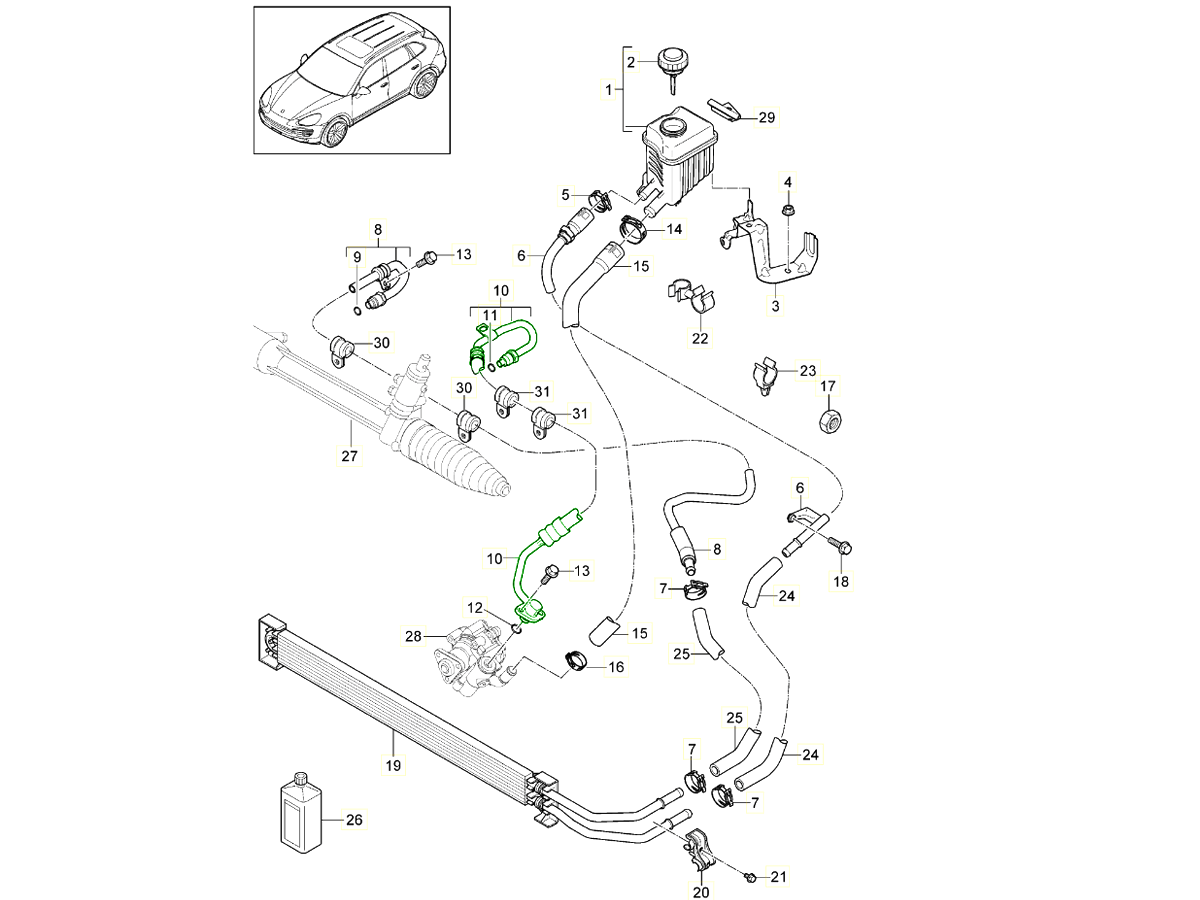 • 优质保时捷动力转向软管、管道和冷却散热器。