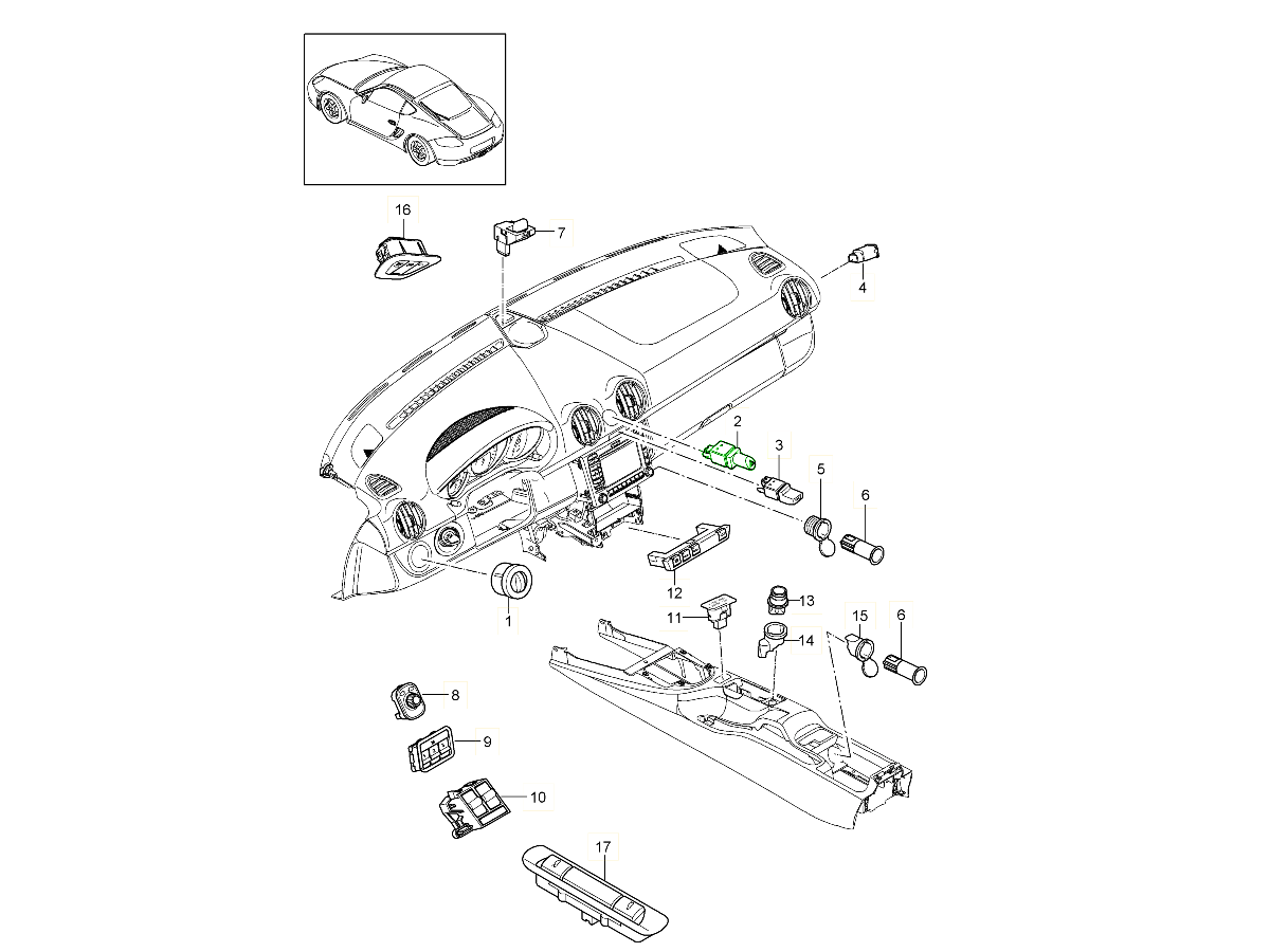 仪表板开关磨损或故障会影响安全性和舒适性。更换有缺陷或损坏的部件可以恢复保时捷的全部功能,提升美观度,并确保其内饰按设计运行。